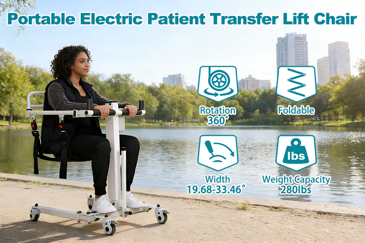 Electric Transfer Lift Chair for Seniors & Patients, 5-in-1 Adjustable Height Power Lift Chair with Hoist Brackets, 4 Casters | Home Mobility Aid for Elderly Care & Caregiver Assistance