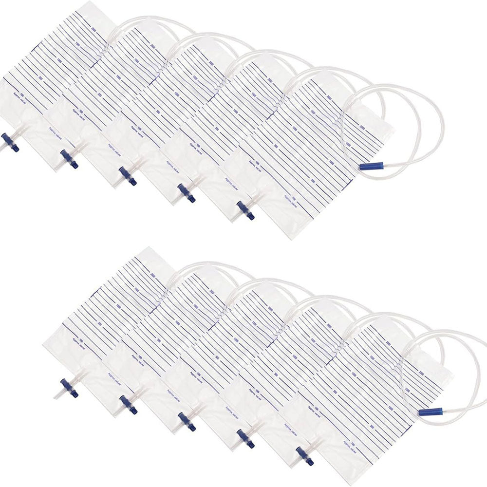 2000ml Disposable Sterile Urine Bag | Cross Anti-Reflux Valve | 90cm Tube | Pack of 10