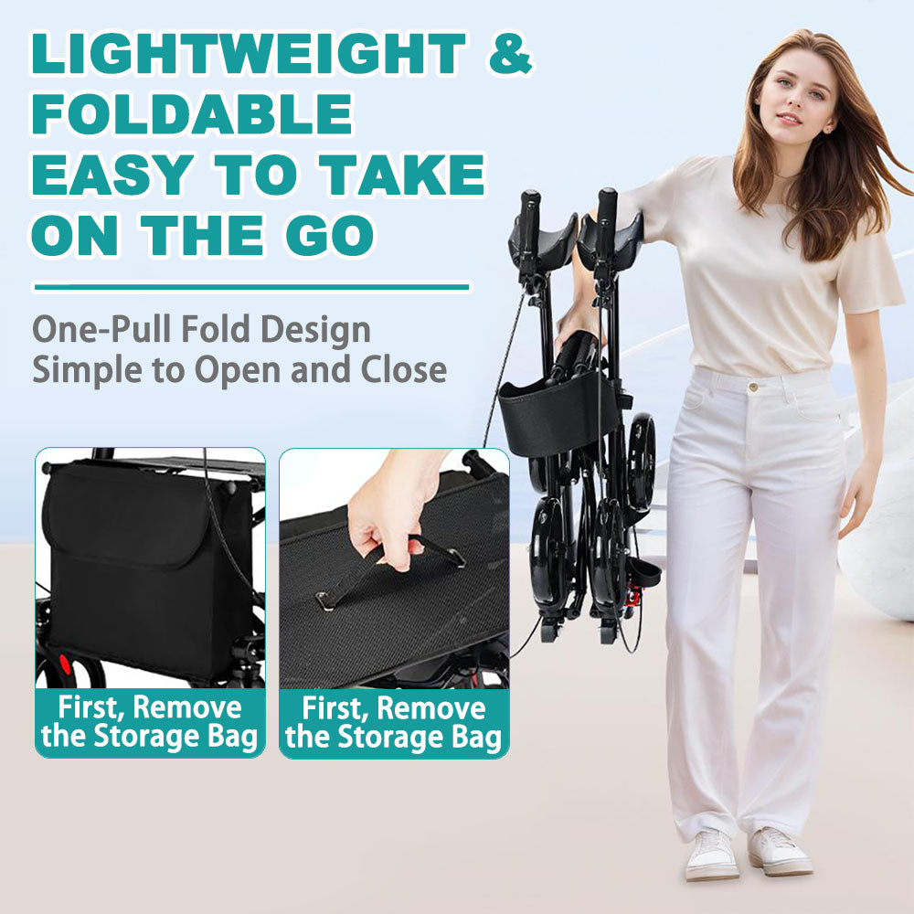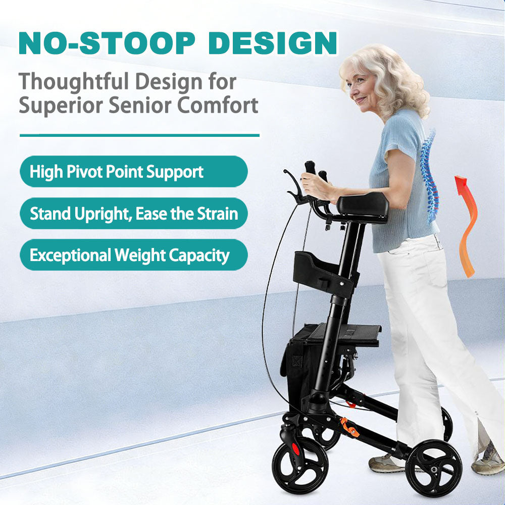 All Terrain Upright Rollator Walker with Seat, Stand up Rolling Walker, Compact Folding Design for Seniors