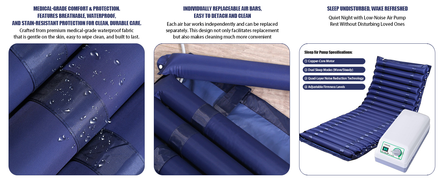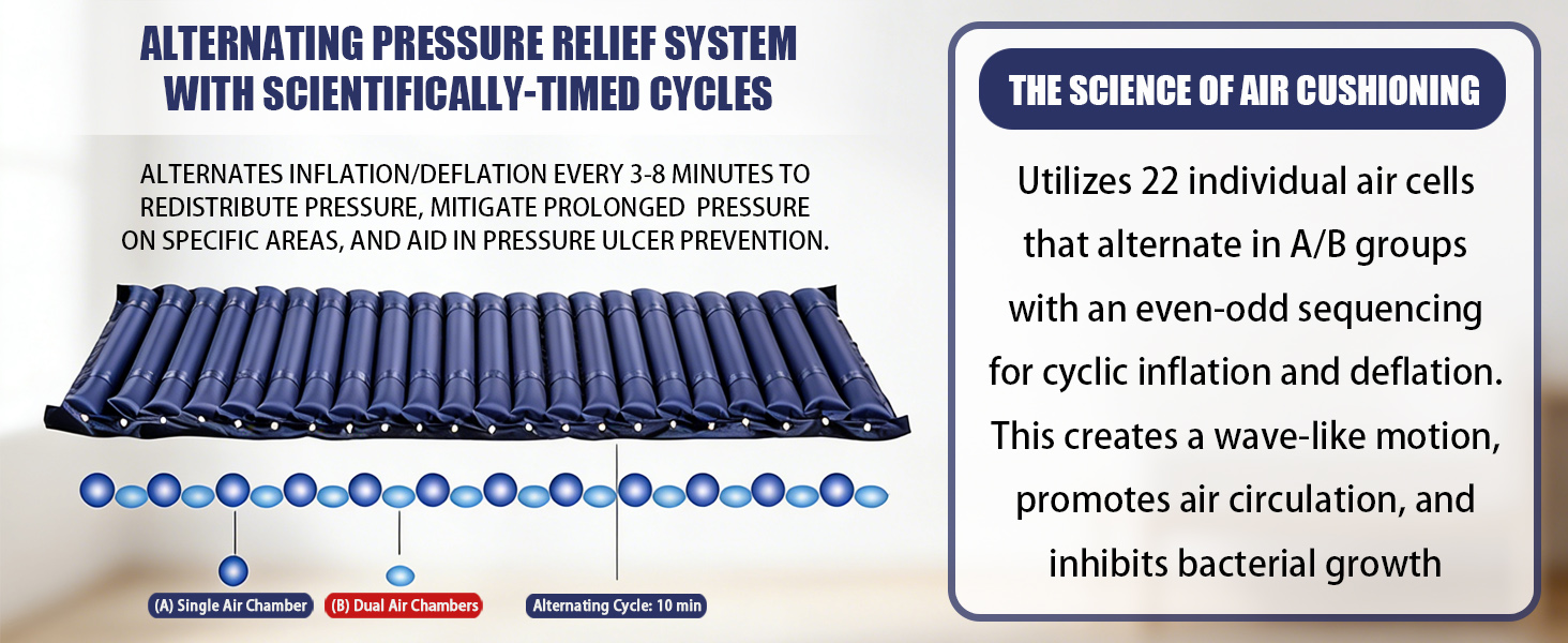 A: By continuously shifting pressure points, it improves blood circulation to vulnerable areas (like the heels, sacrum, and shoulders) and reduces prolonged pressure on any single spot, which is a primary cause of pressure sores.